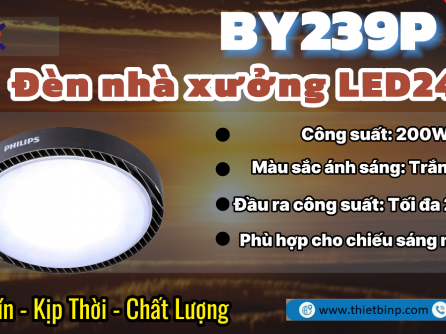 Công suất: 200W, cung cấp đủ ánh sáng cho các không gian công nghiệp lớn.